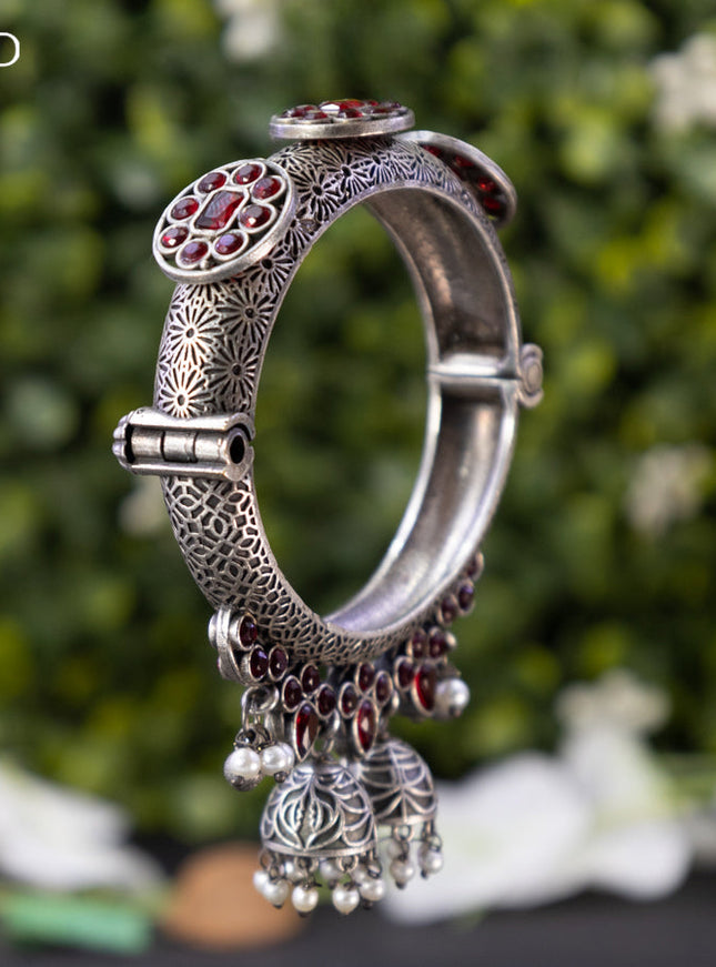 zircon bangle with ruby and cz stones gold finish