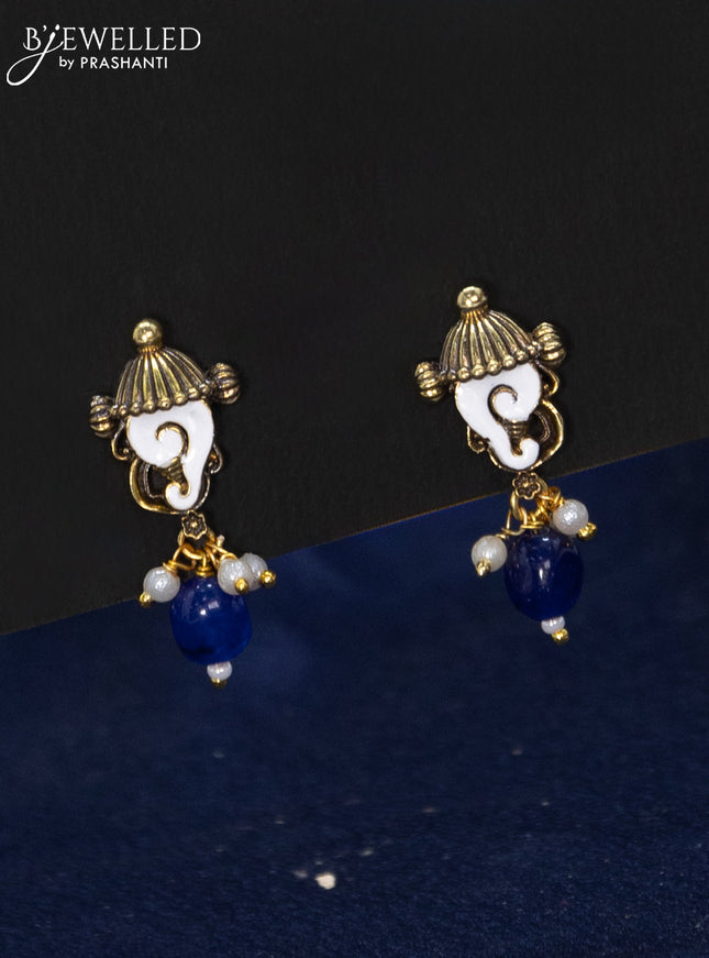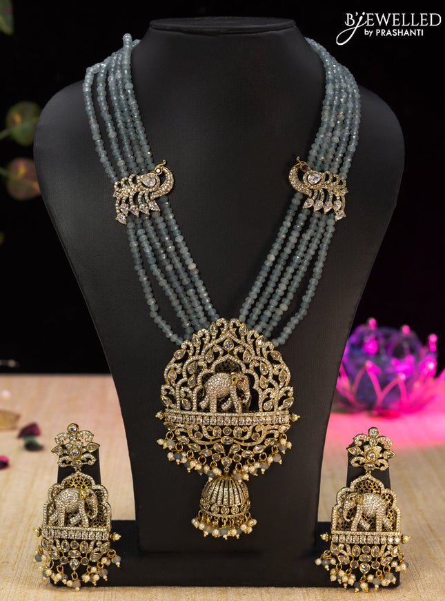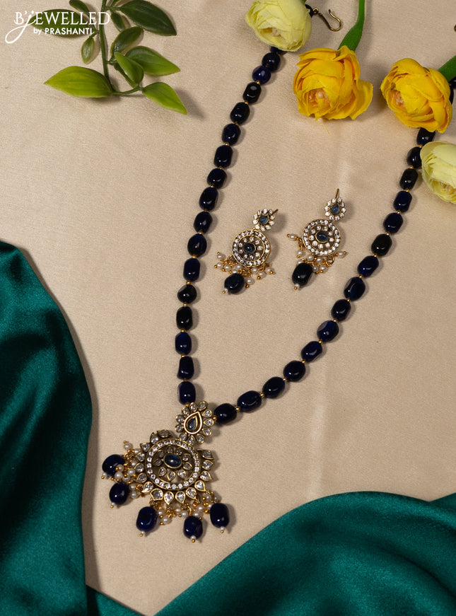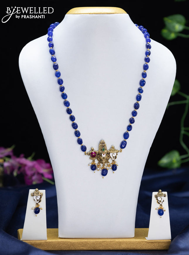 10% OFF Beaded double layer blue necklace ganesha pendant with sapphire & cz stones and pearl & beads hanging in victorian finish Beaded double layer blue necklace ganesha pendant with sapphire & cz stones and pearl & beads hanging in victorian finish