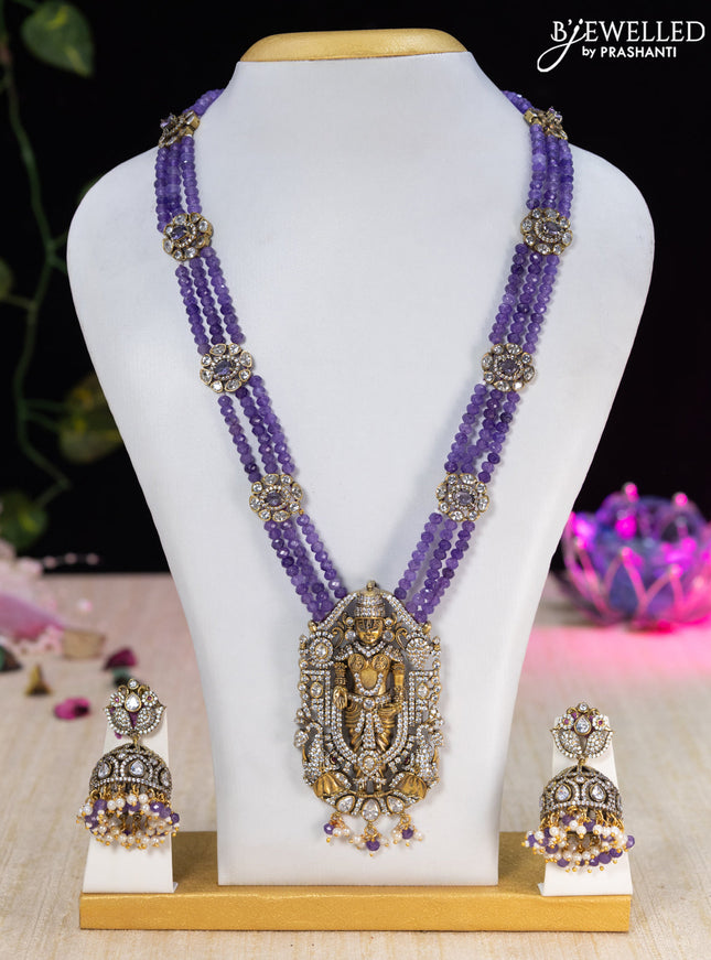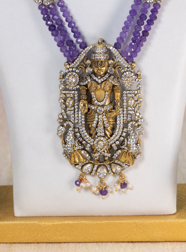 10% OFF Beaded triple layer violet necklace lakshmi pendant with kundan & cz stones and pearl & beads hanging in victorian finish Beaded triple layer violet necklace lakshmi pendant with kundan & cz stones and pearl & beads hanging in victorian finish