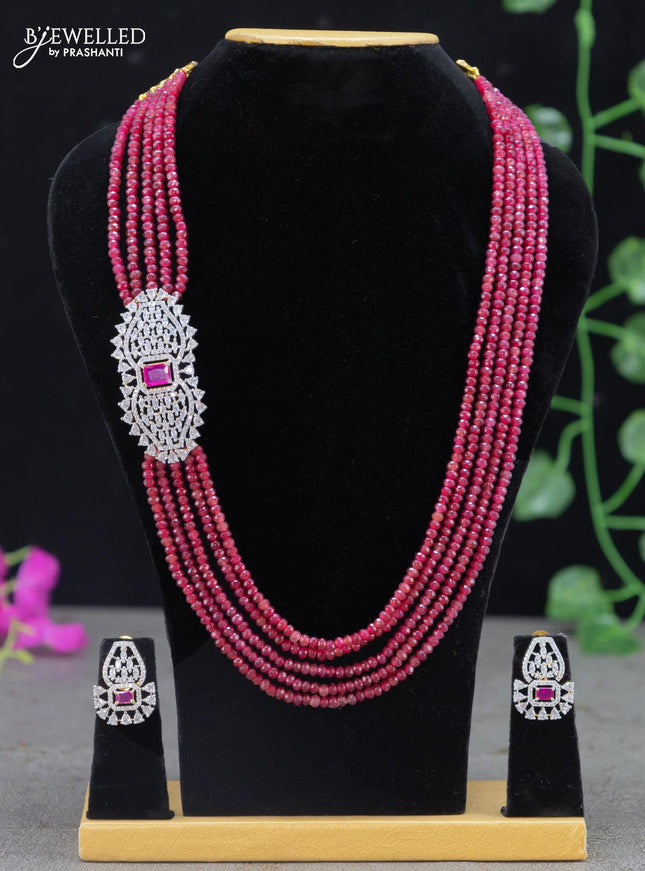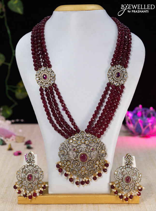 10% OFF Beaded multilayer maroon haaram with ruby & cz stones and pearl & beads hanging in victorian finish Beaded multilayer maroon haaram with ruby & cz stones and pearl & beads hanging in victorian finish