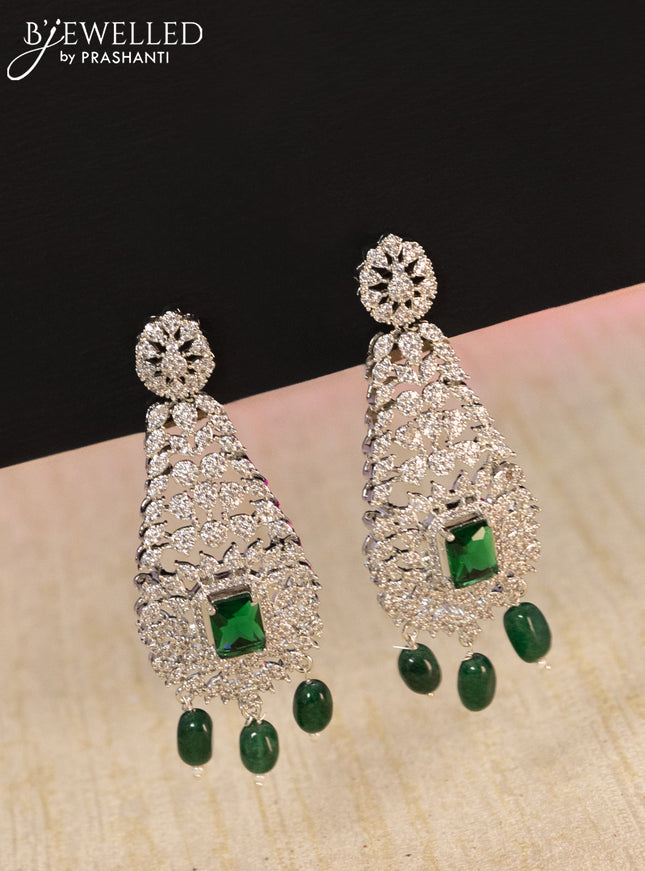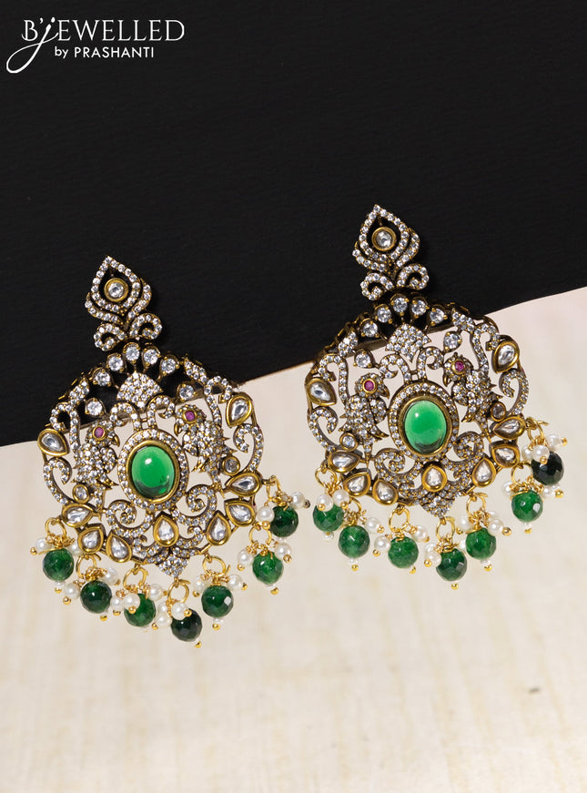 10% OFF Beaded triple layer green necklace peacock design with emerald kundan & cz stones and pearl & beads hanging Beaded triple layer green necklace peacock design with emerald kundan & cz stones and pearl & beads hanging