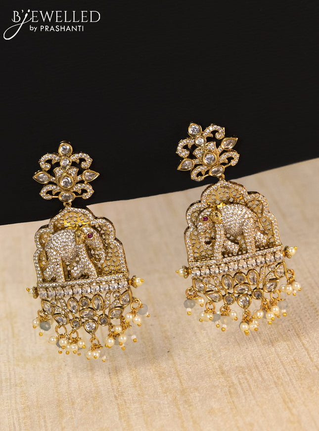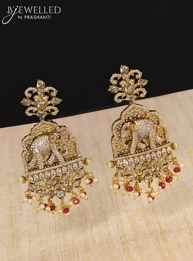 10% OFF Beaded baby pink necklace elephant design with cz stones and pearl & beads hanging in victorian finish Beaded baby pink necklace elephant design with cz stones and pearl & beads hanging in victorian finish