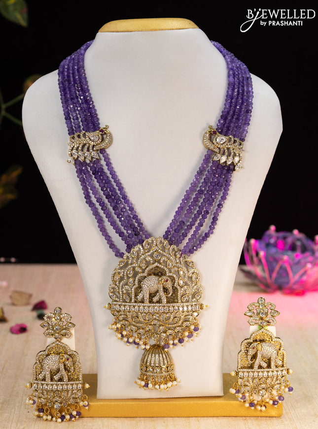 10% OFF Beaded triple layer violet necklace peacock design with kundan & cz stones and pearl & beads hanging Beaded triple layer violet necklace peacock design with kundan & cz stones and pearl & beads hanging