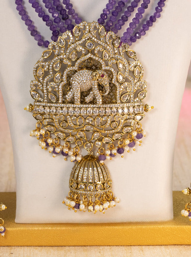10% OFF Beaded multilayer violet necklace with kundan & cz stones and pearl & beads hanging in victorian finish Beaded multilayer violet necklace with kundan & cz stones and pearl & beads hanging in victorian finish