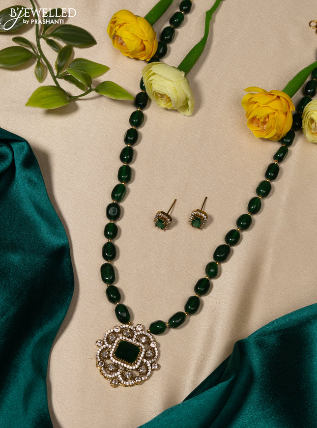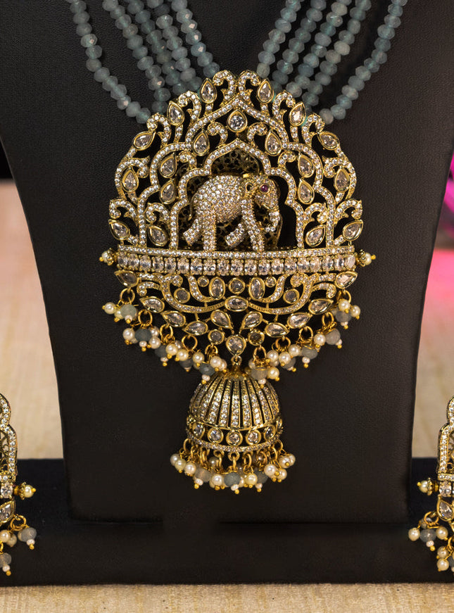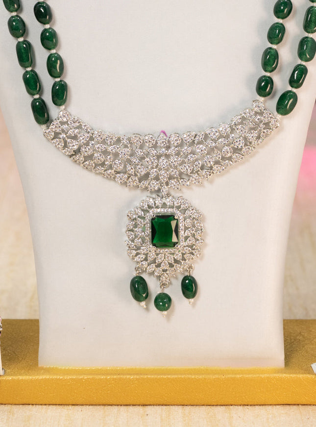 10% OFF Beaded multilayer mint green necklace with cz stones side pendant in victorian finish Beaded multilayer mint green necklace with cz stones side pendant in victorian finish