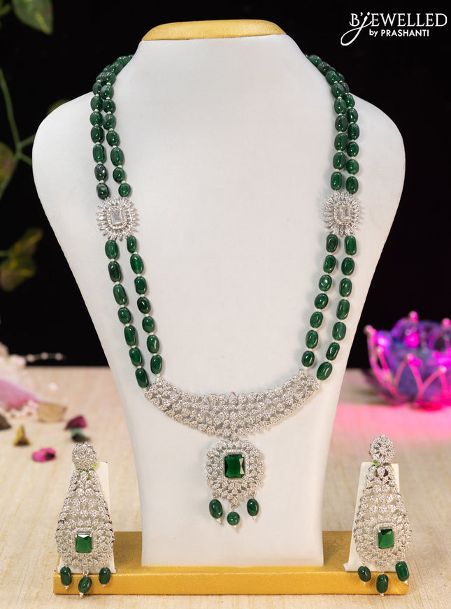 10% OFF Beaded multilayer green necklace with emerald kundan & cz stones and pearl & beads hanging in victorian finish Beaded multilayer green necklace with emerald kundan & cz stones and pearl & beads hanging in victorian finish