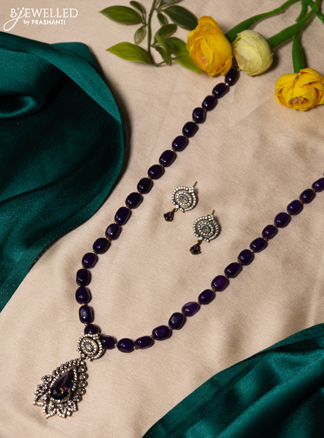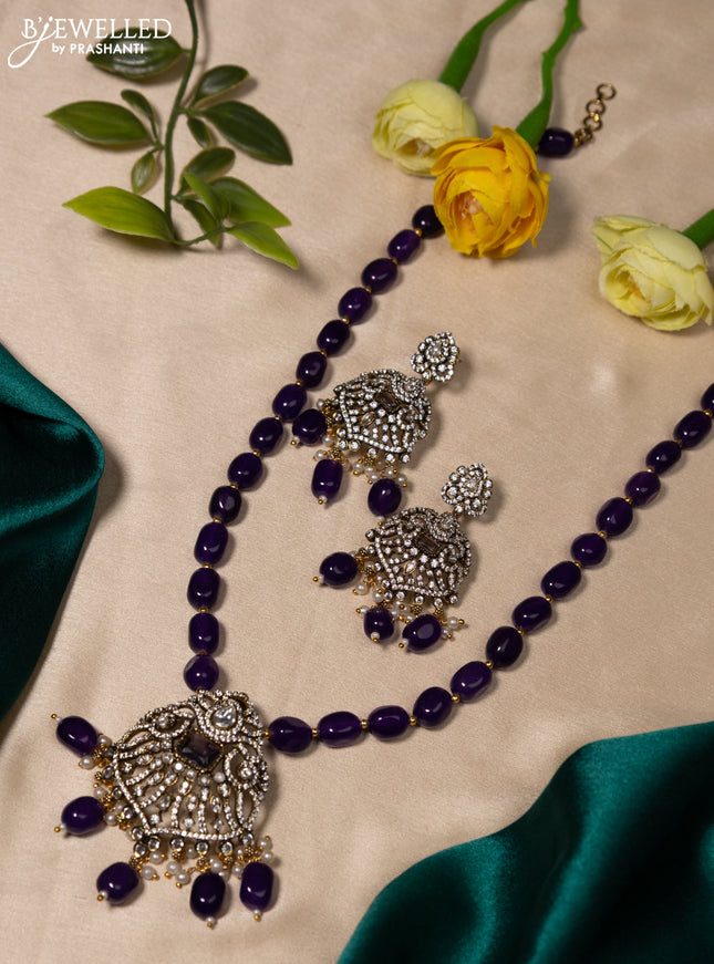 10% OFF Beaded double layer violet necklace with cz stones and pearl & beads hanging in victorian finish Beaded double layer violet necklace with cz stones and pearl & beads hanging in victorian finish