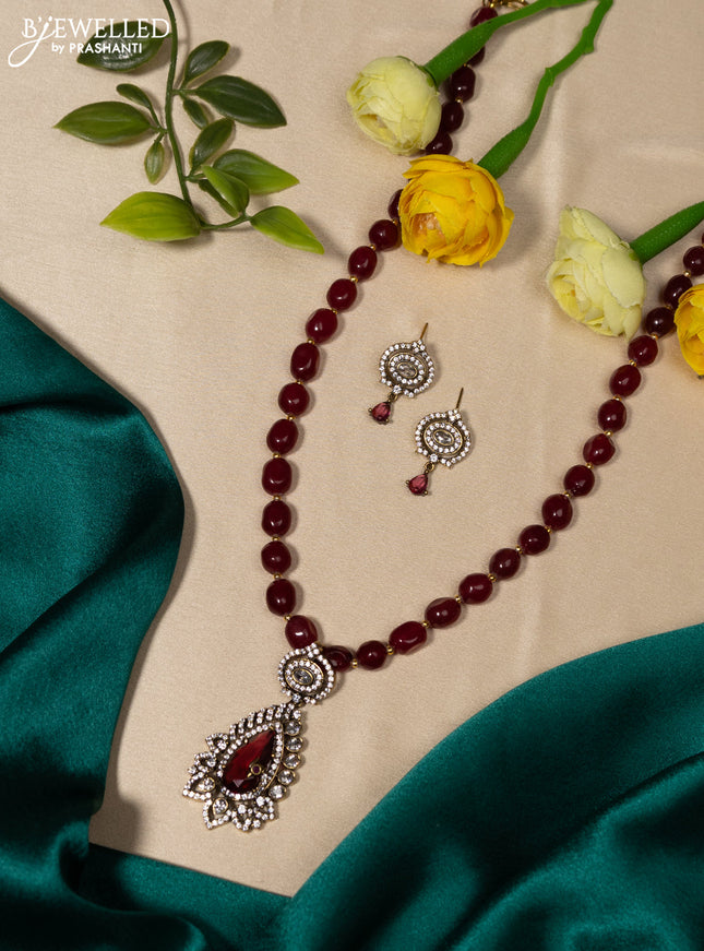 10% OFF Beaded double layer maroon necklace with ruby & cz stones and pearl & beads hanging in victorian finish Beaded double layer maroon necklace with ruby & cz stones and pearl & beads hanging in victorian finish