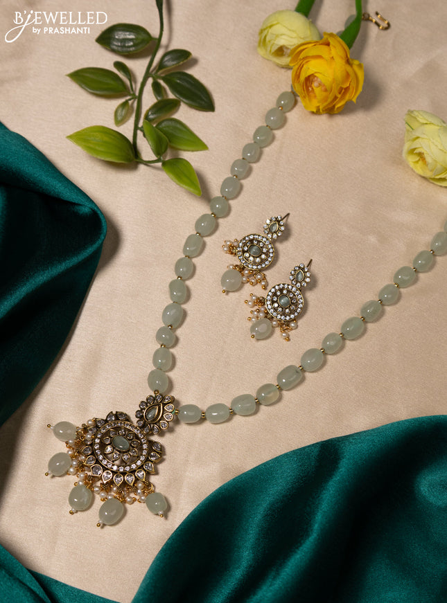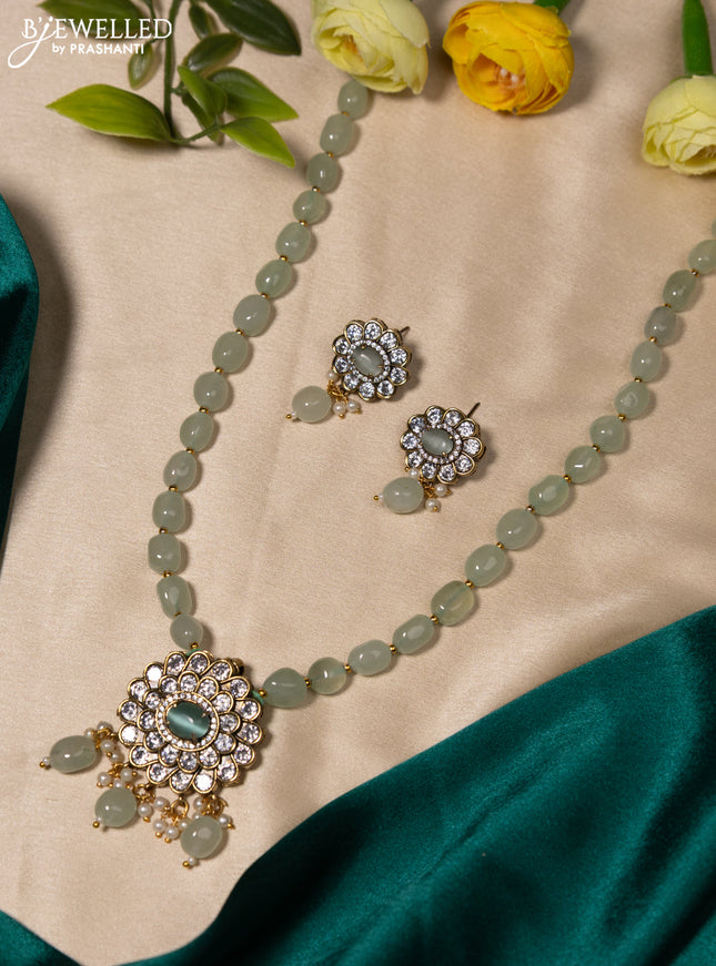 10% OFF Beaded mint green necklace krishna pendant with kemp & cz stones and pearl & beads hanging in victorian finish Beaded mint green necklace krishna pendant with kemp & cz stones and pearl & beads hanging in victorian finish