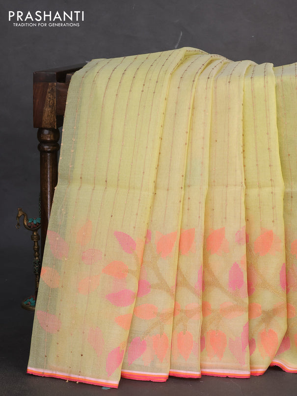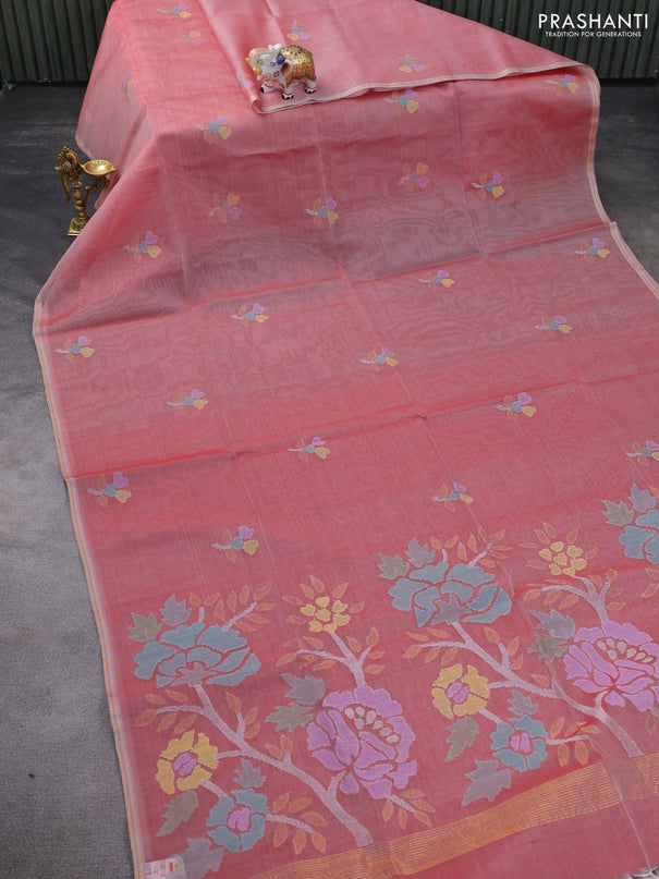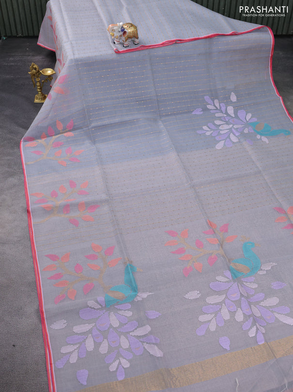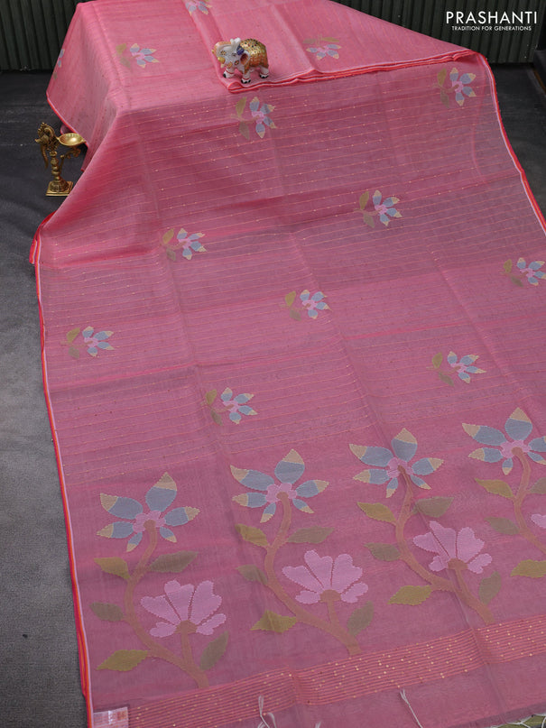 Banana silk saree pink with silver & gold zari ...
