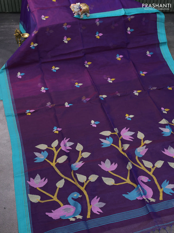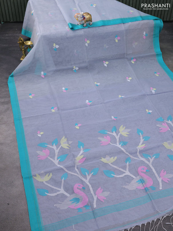 Banana silk saree peacock blue with silver & go...