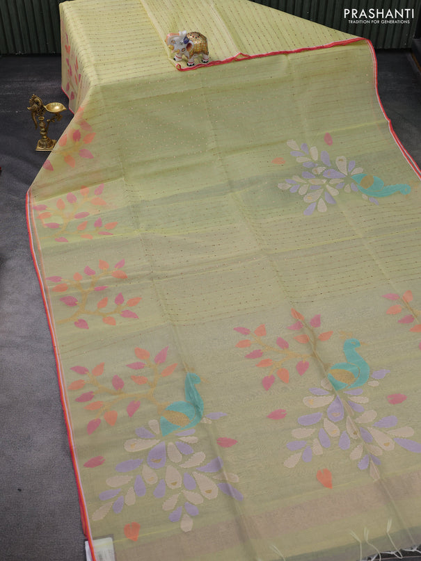 Pure organza partly silk saree pastel green and...