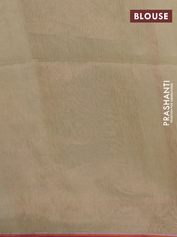 Banana silk saree dark peach with silver & gold...