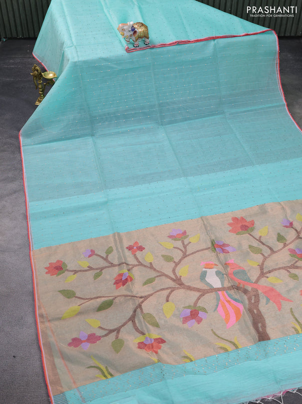 Banana silk saree blue with silver & gold zari ...