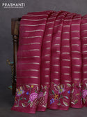 Banana silk saree wine shade with silver & gold...
