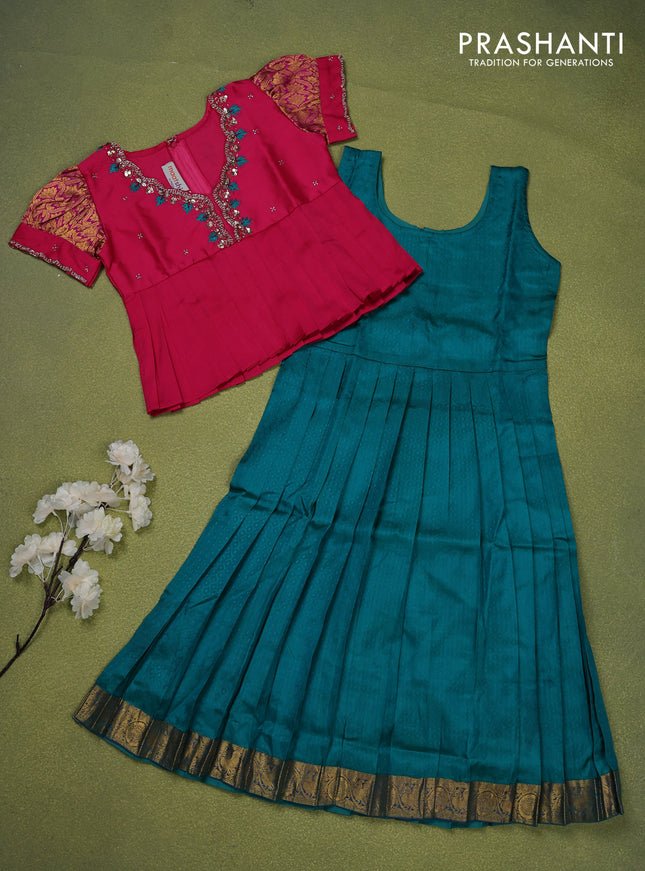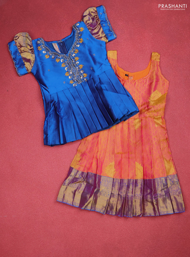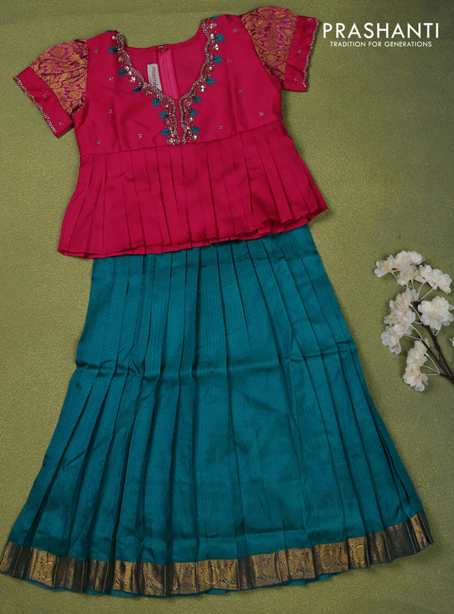 Pure silk kids lehenga pink and teal blue with ...