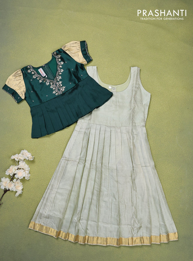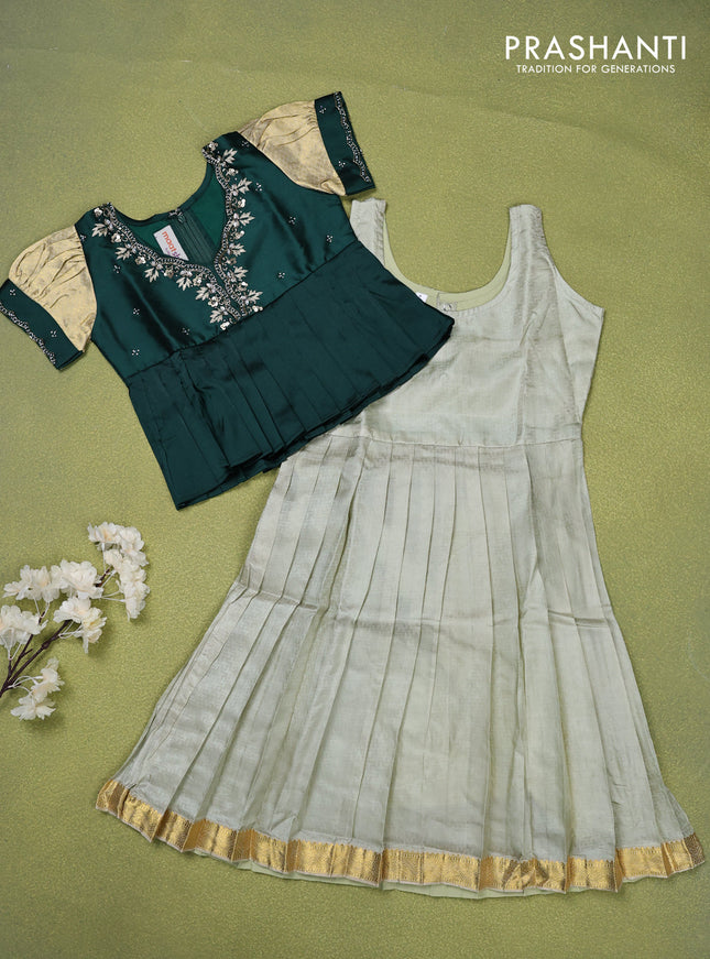 Pure silk kids lehenga bottle green and elaichi...