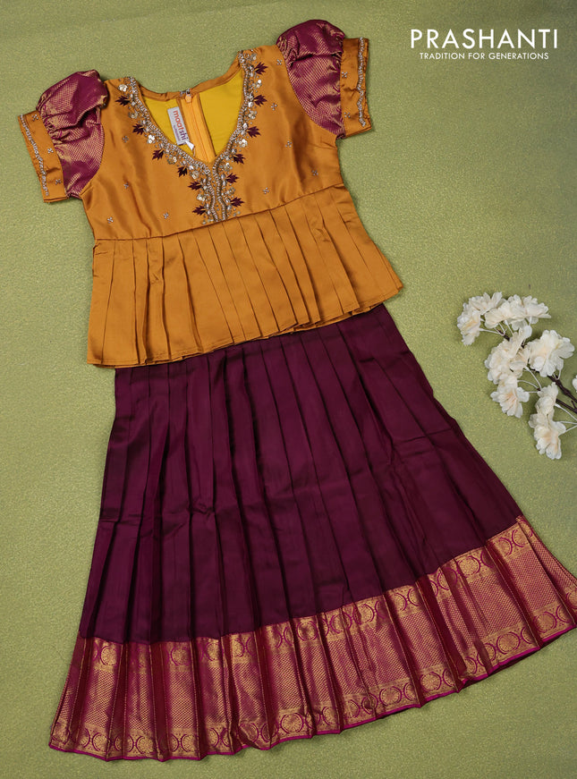 Pure silk kids lehenga mustard shade and wine s...