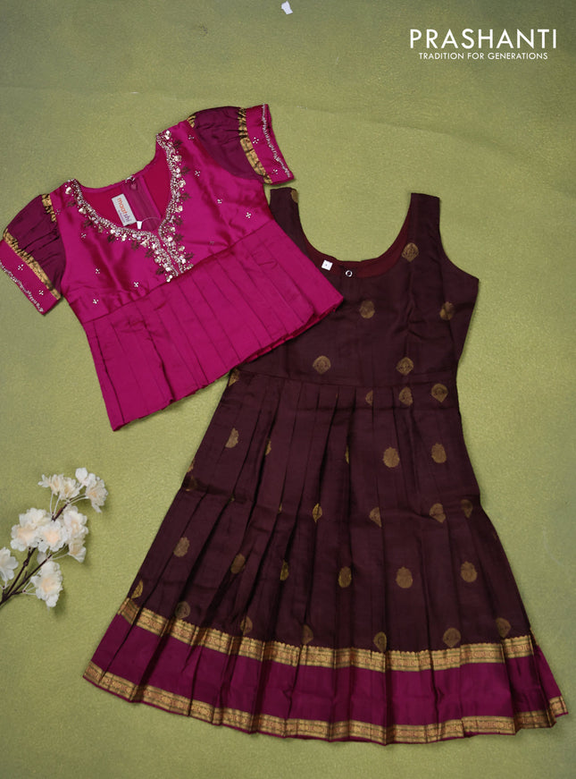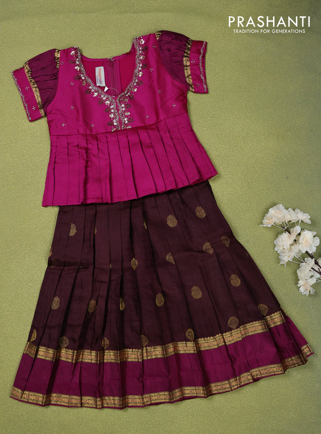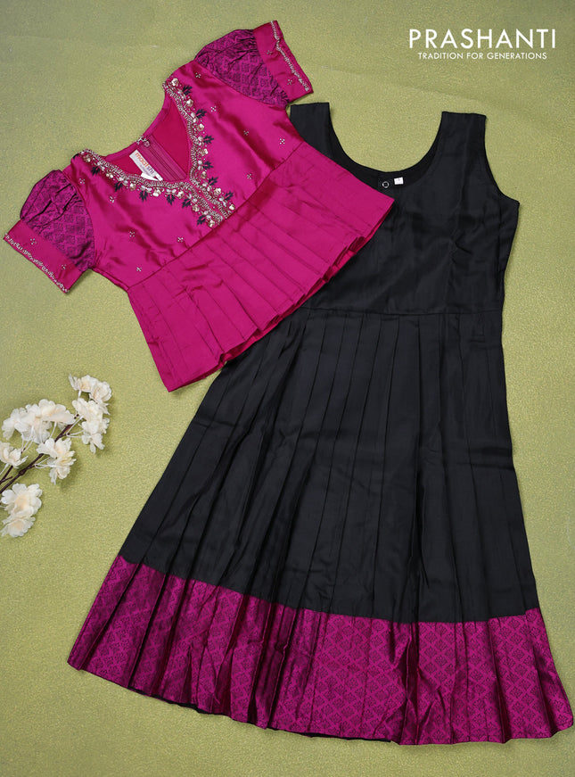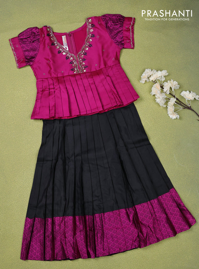 Pure silk kids lehenga magenta pink and black w...