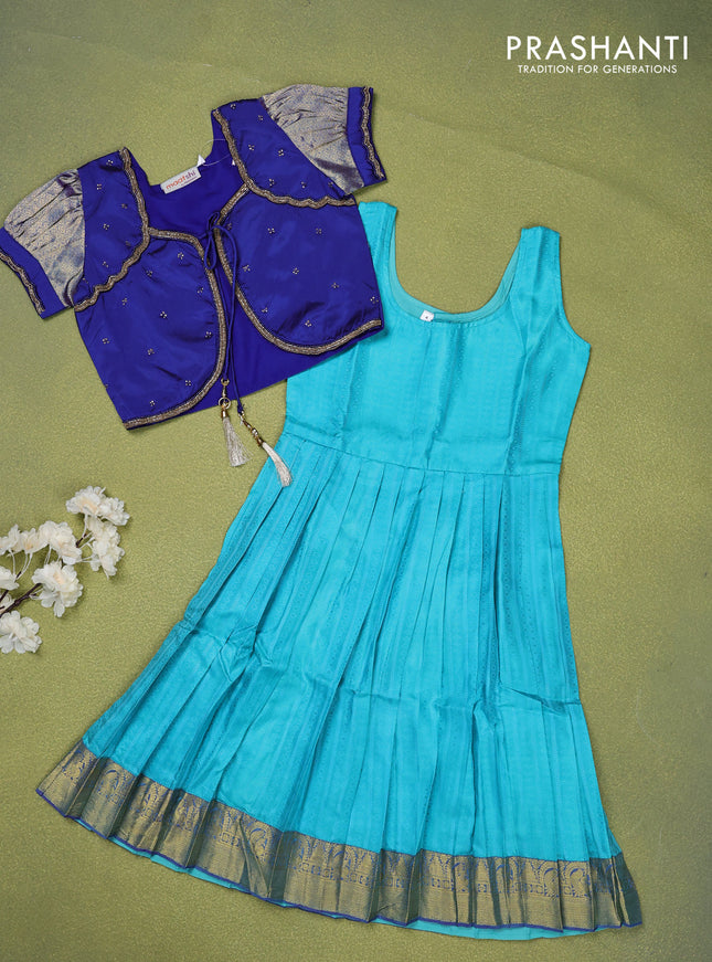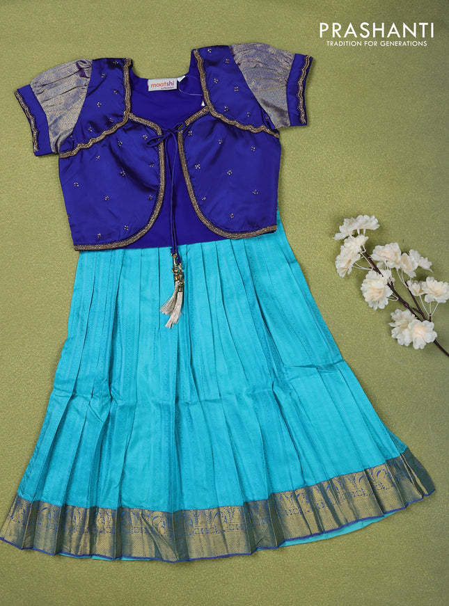 Pure silk kids lehenga blue and teal blue with ...