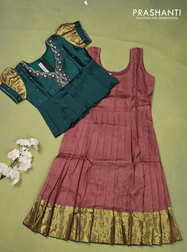 Pure silk kids lehenga dark green and brown wit...