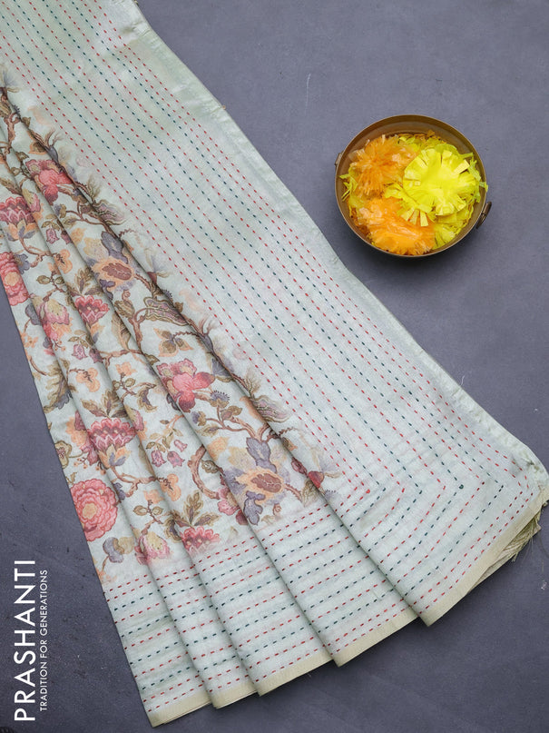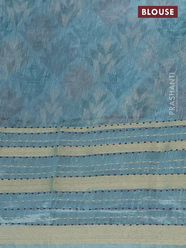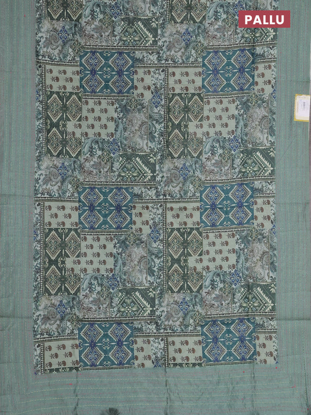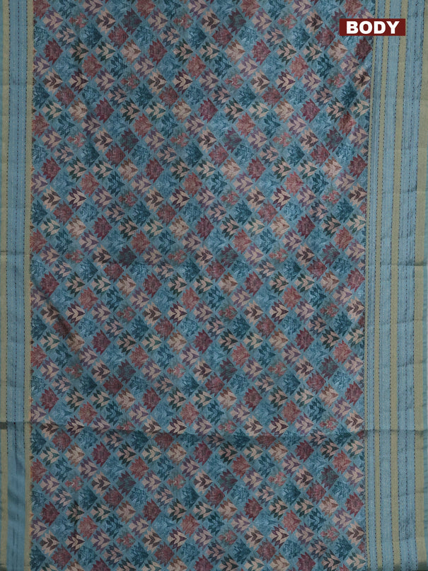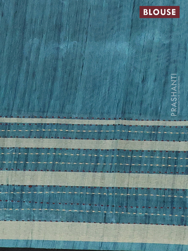 Semi tussar saree teal green and blue with allo...