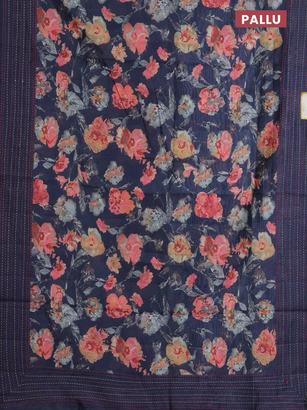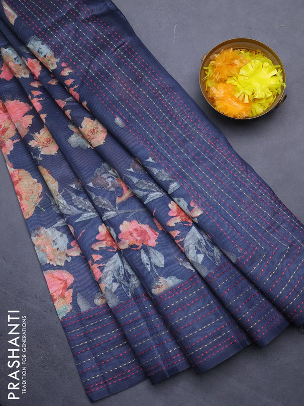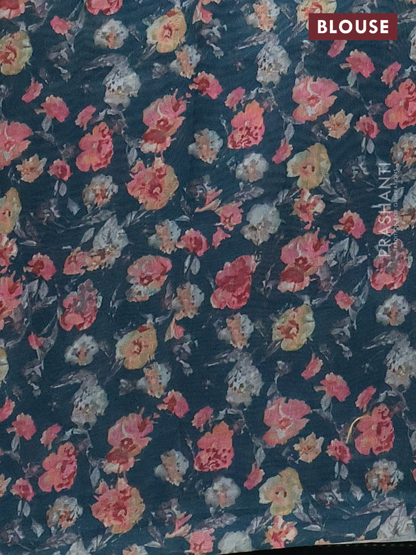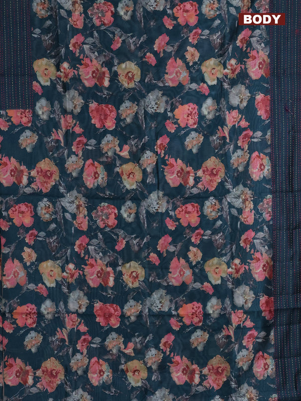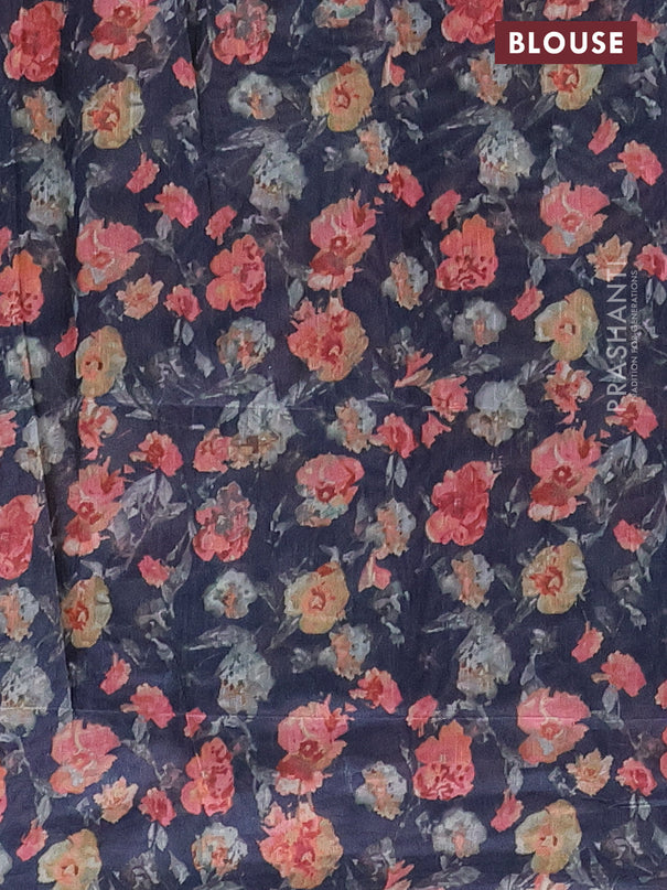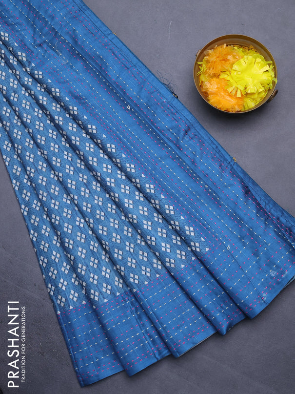 Semi tussar saree dark blue and teal green with...