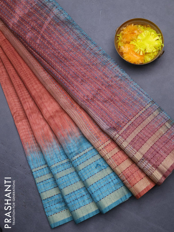 Semi tussar saree blue and teal blue with allov...