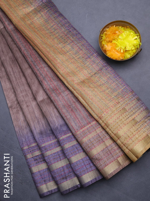Semi tussar saree dual shade of bluish grey and...