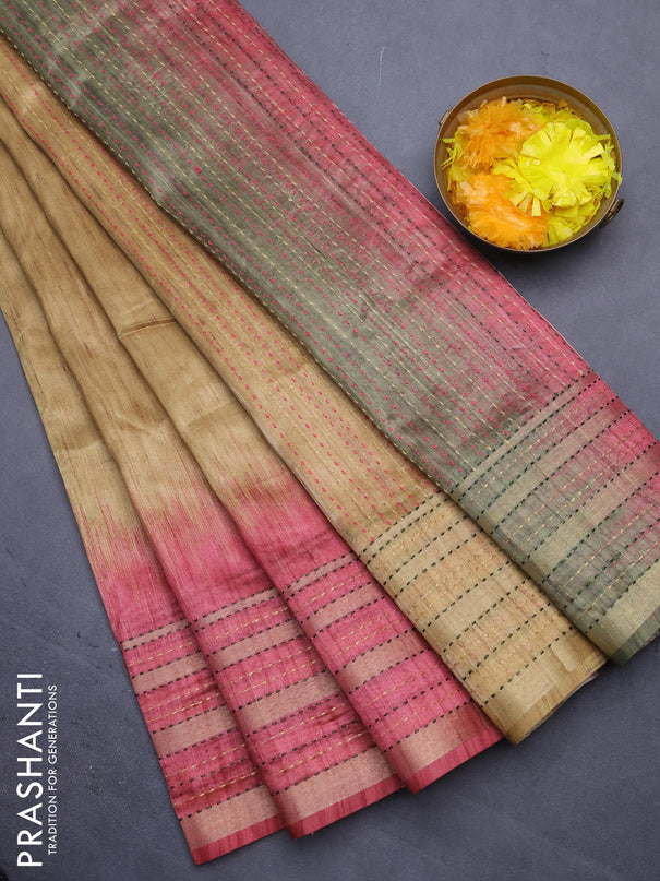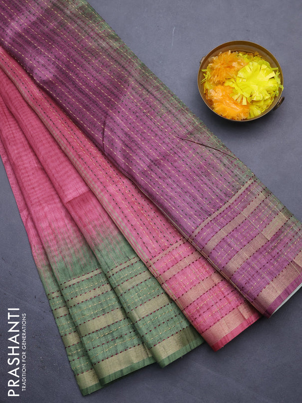 Semi tussar saree pink and dual shade of green ...