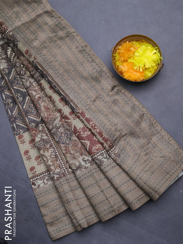 Semi tussar saree dual shade of grey and dual s...