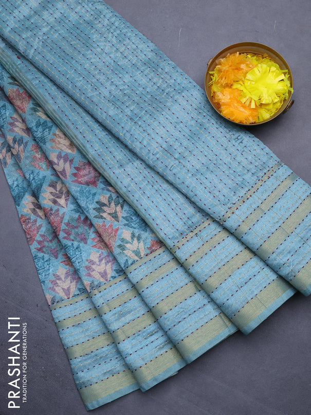 Semi tussar saree cs blue and blue with allover...