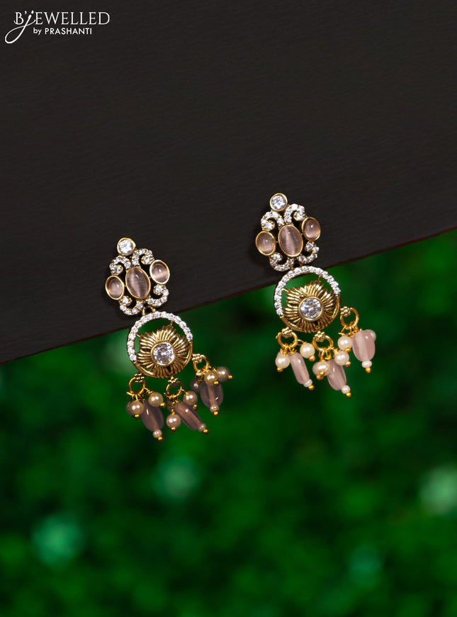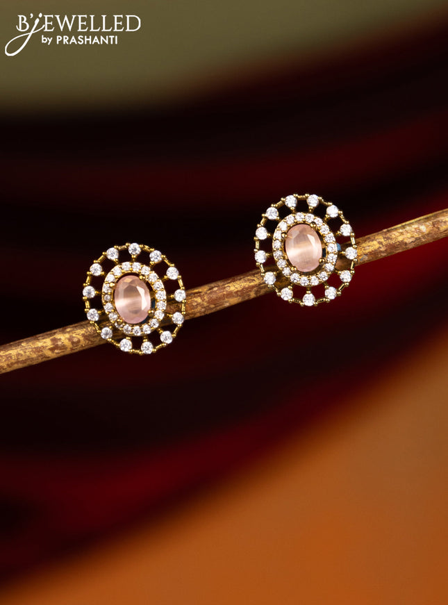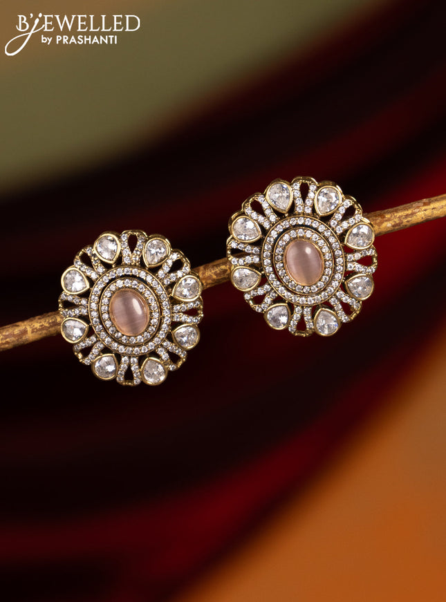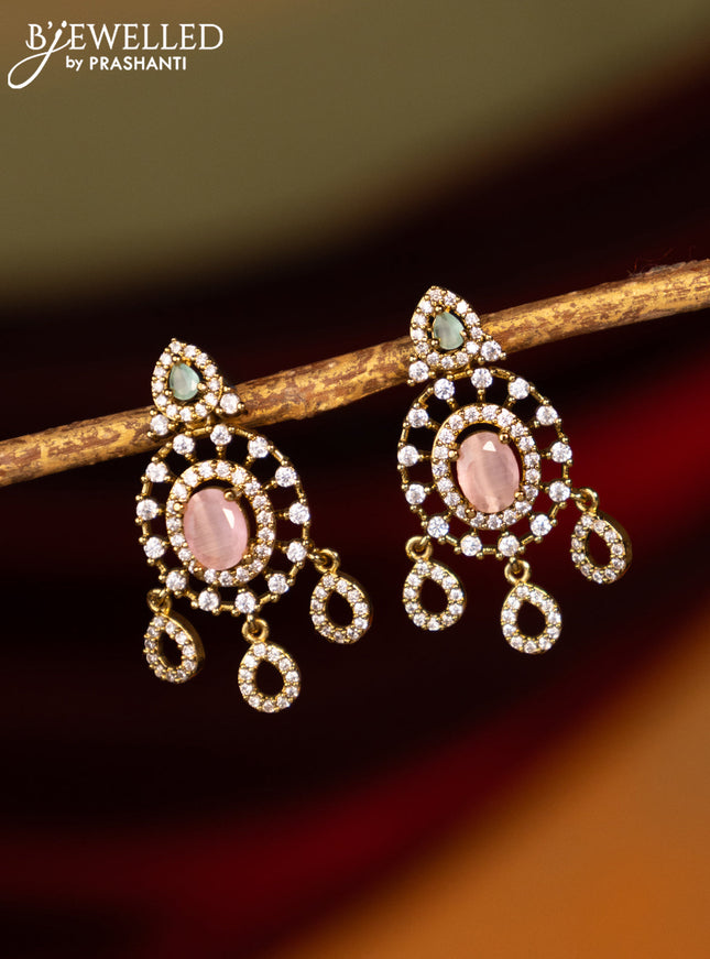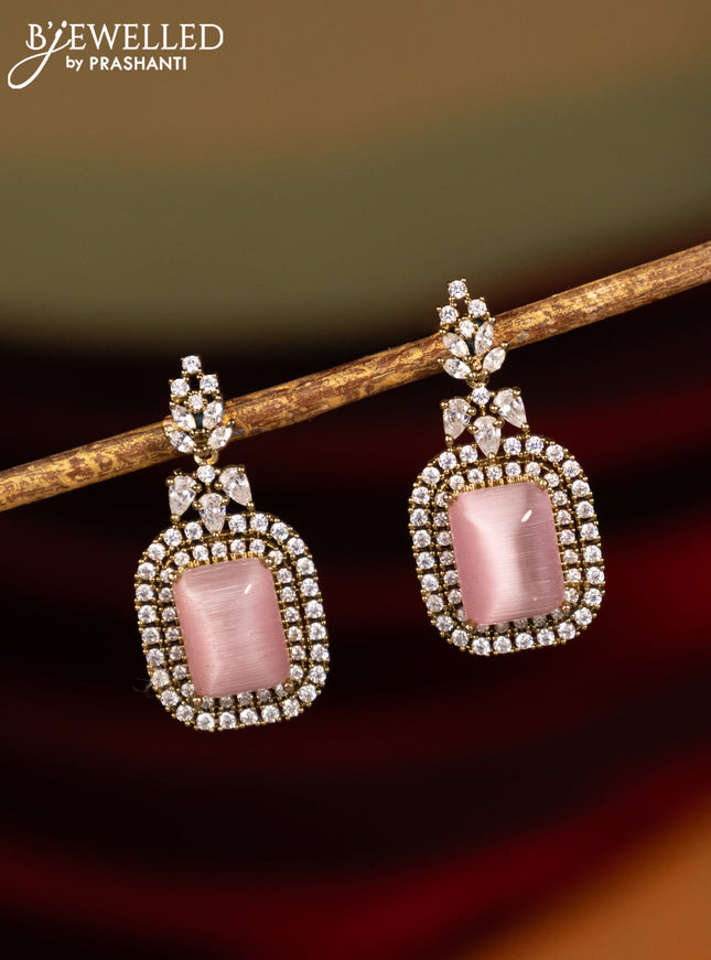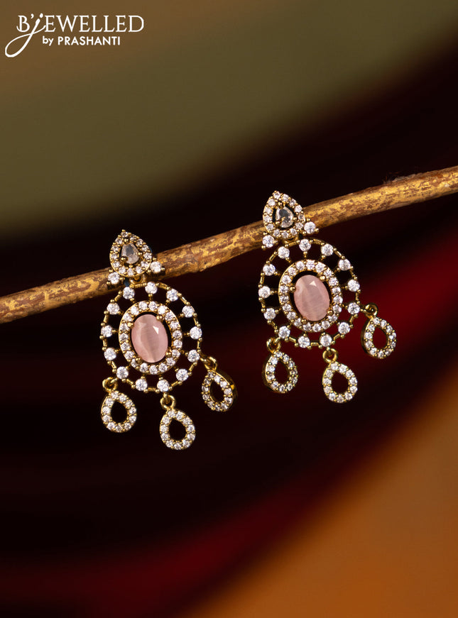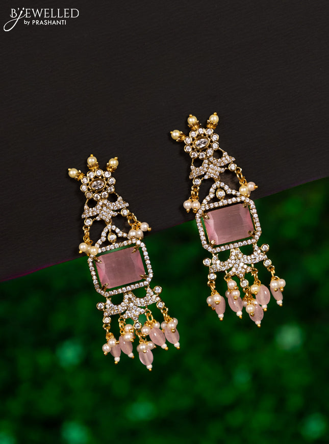 Earrings with baby pink and cz stones in victor...
