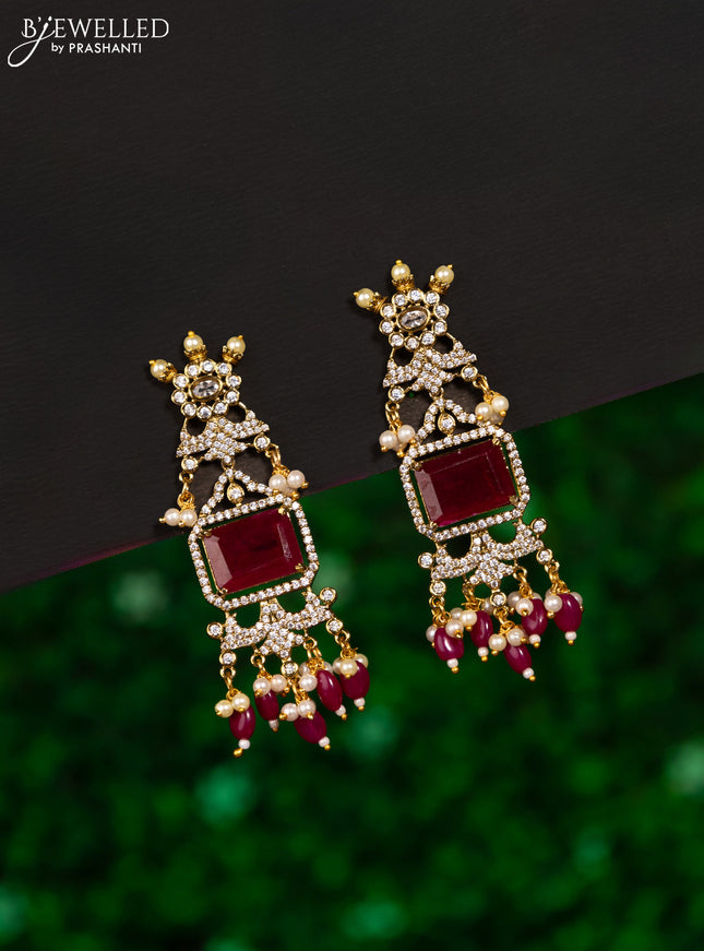 Earring with ruby and cz stones in victorian fi...