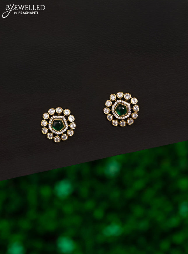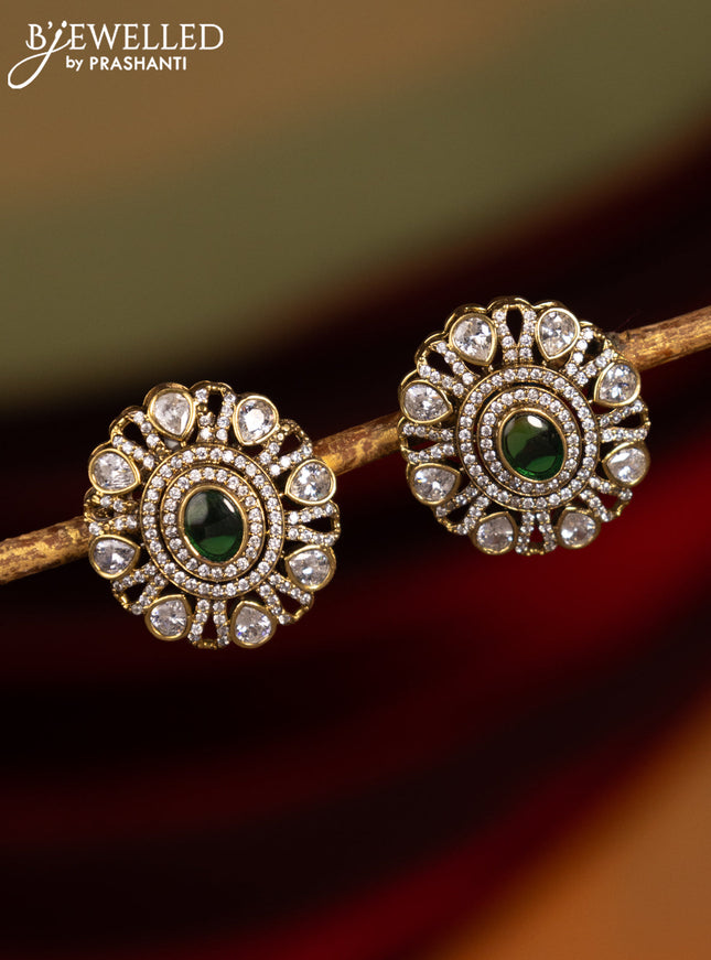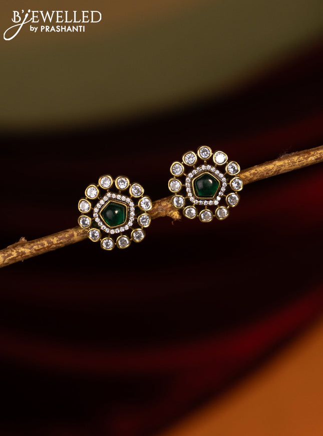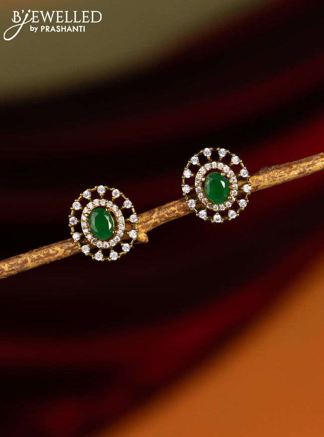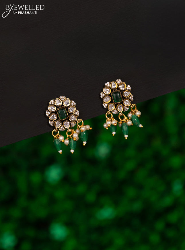 Earrings with kemp & cz stones and green beads ...