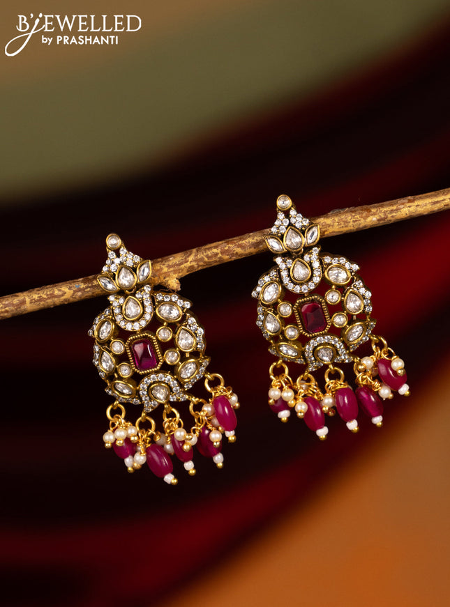 Earrings with ruby & cz stones and beads hangin...