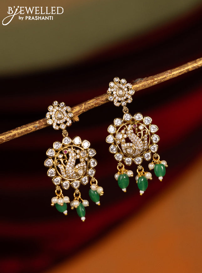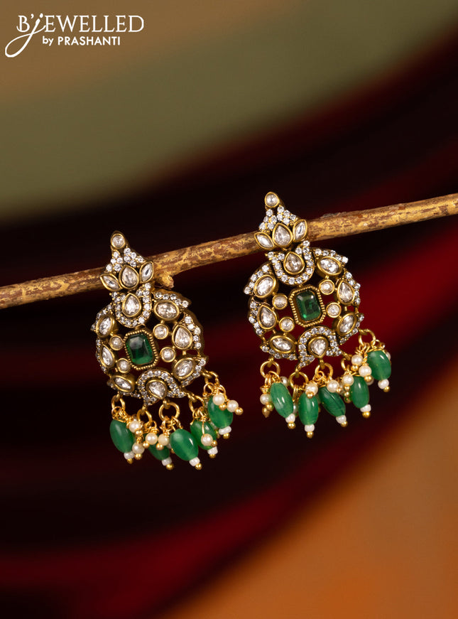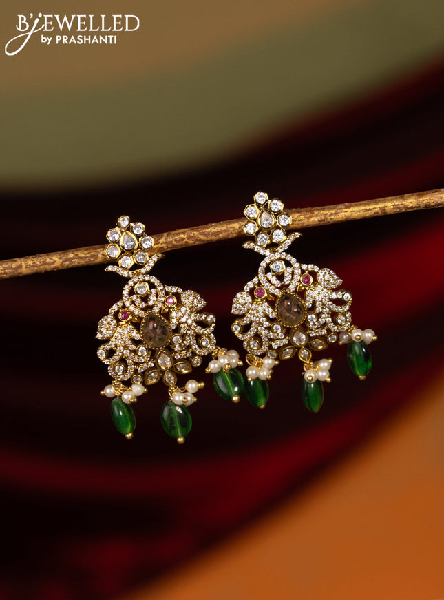 Earrings with kemp & cz stones and beads hangin...