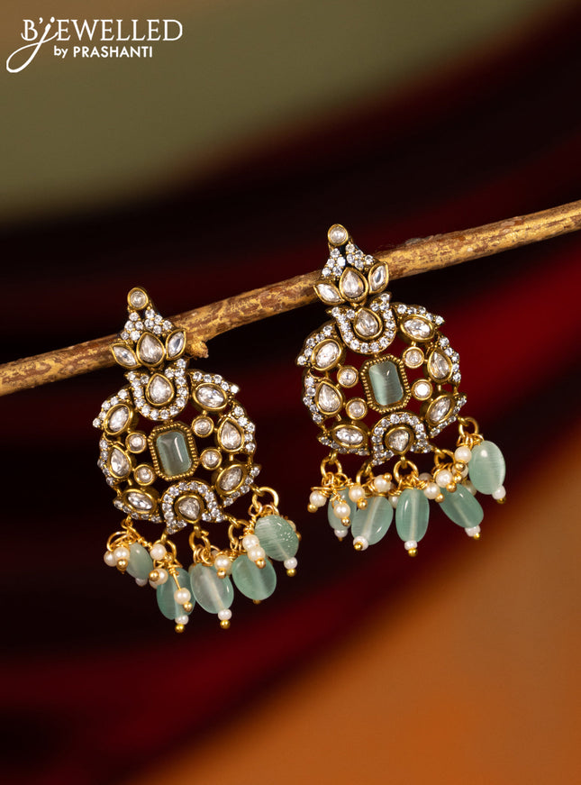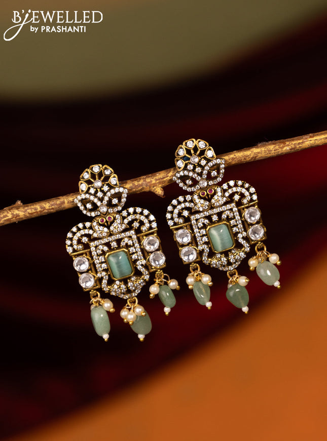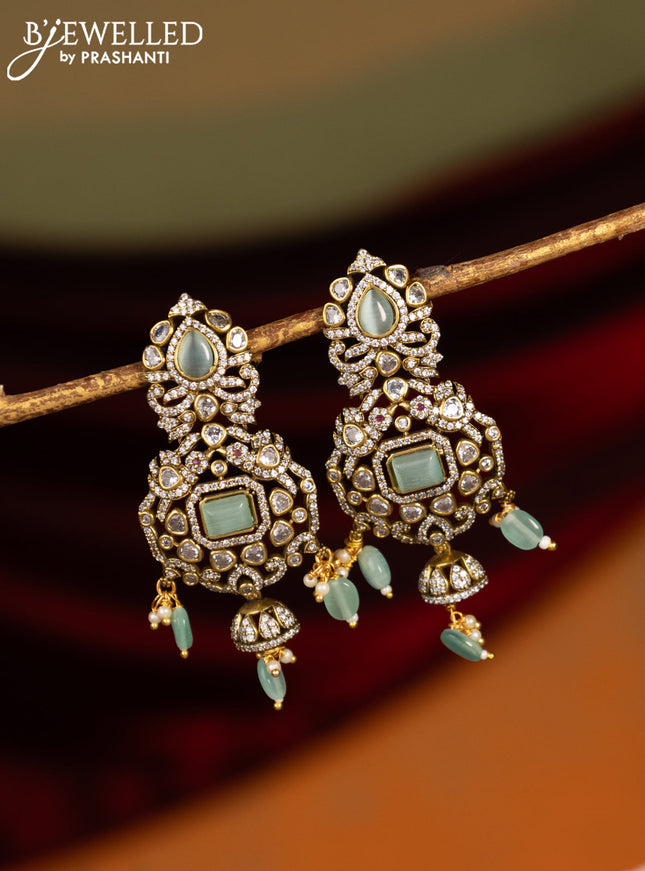 Victorian finish earrings with mint green & cz ...