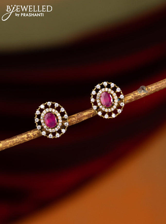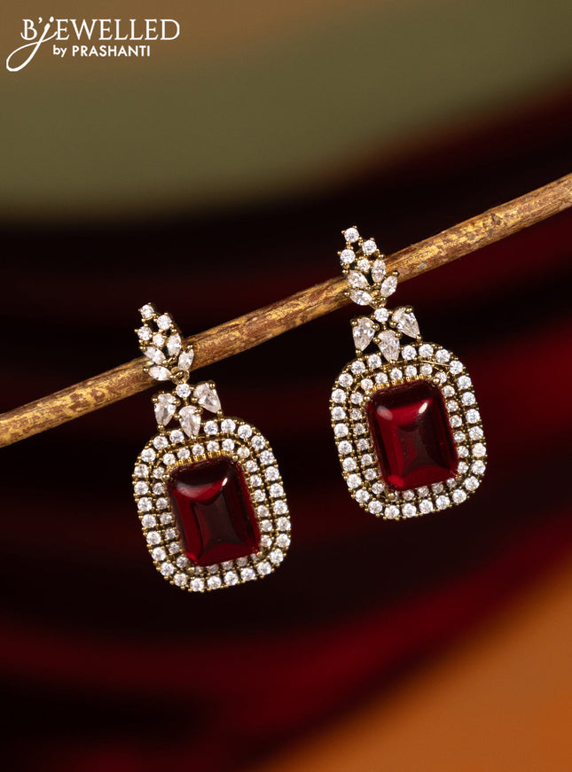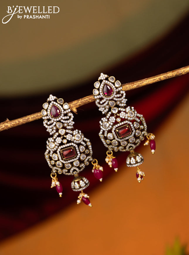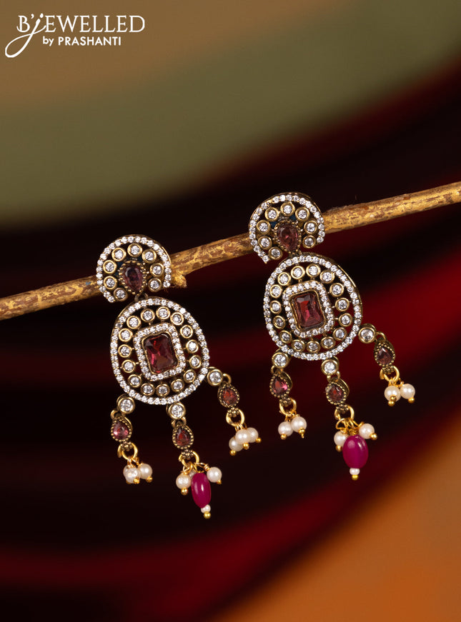 Victorian finish earrings with ruby and cz stones