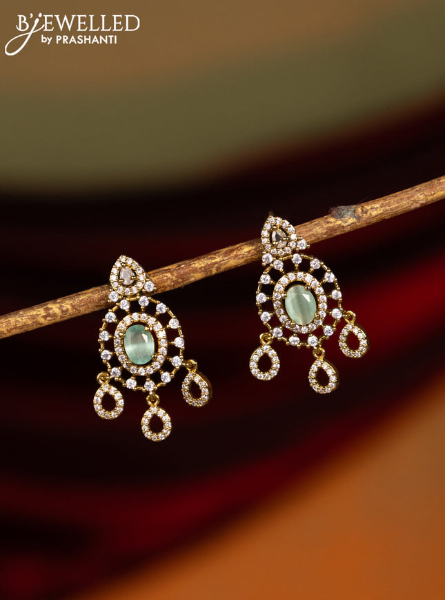 Earring with mint green and cz stones in victor...