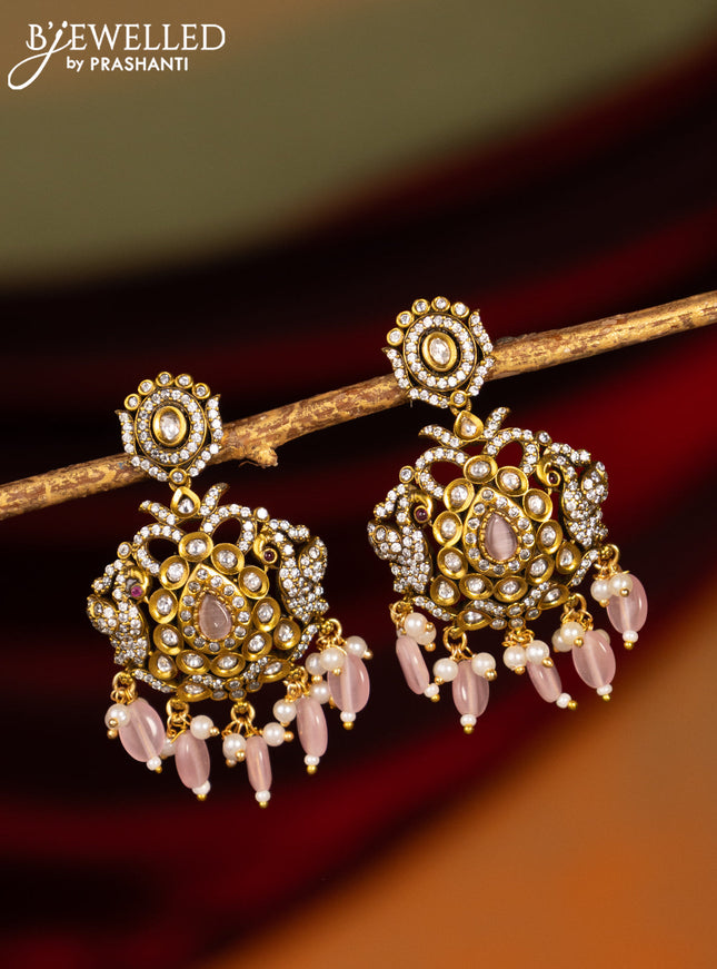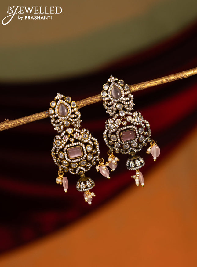 Victorian finish earrings with baby pink & cz s...