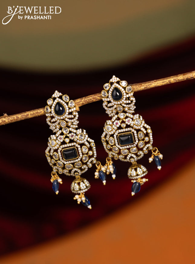 Earrings with kundan and cz stones in victorian...
