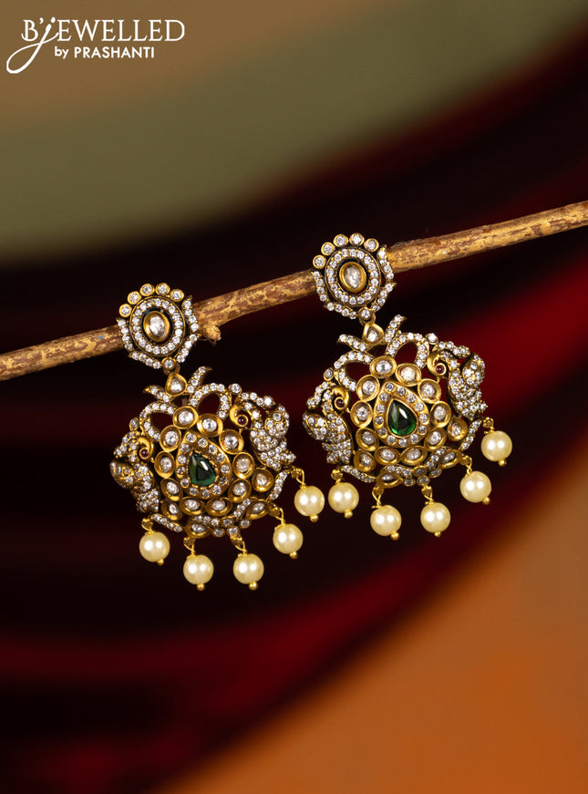 Earrings with emerald & cz stones and pearl han...