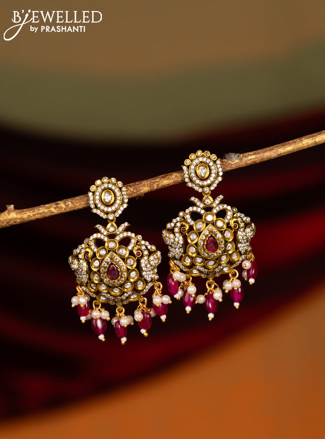 Earring with peacock design ruby & cz stones an...
