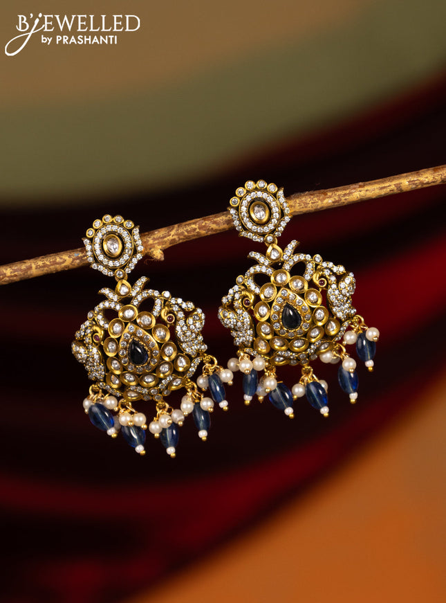 Earrings with sapphire & cz stones and pearl ha...