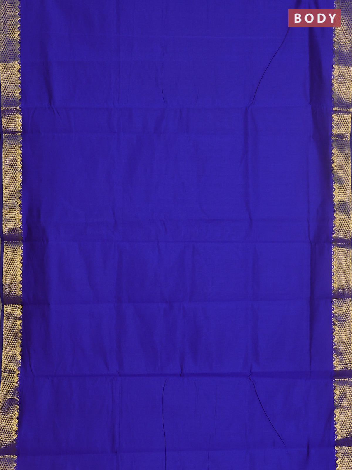 10 yards Poly cotton saree blue and mehendi green with plain body and zari woven border