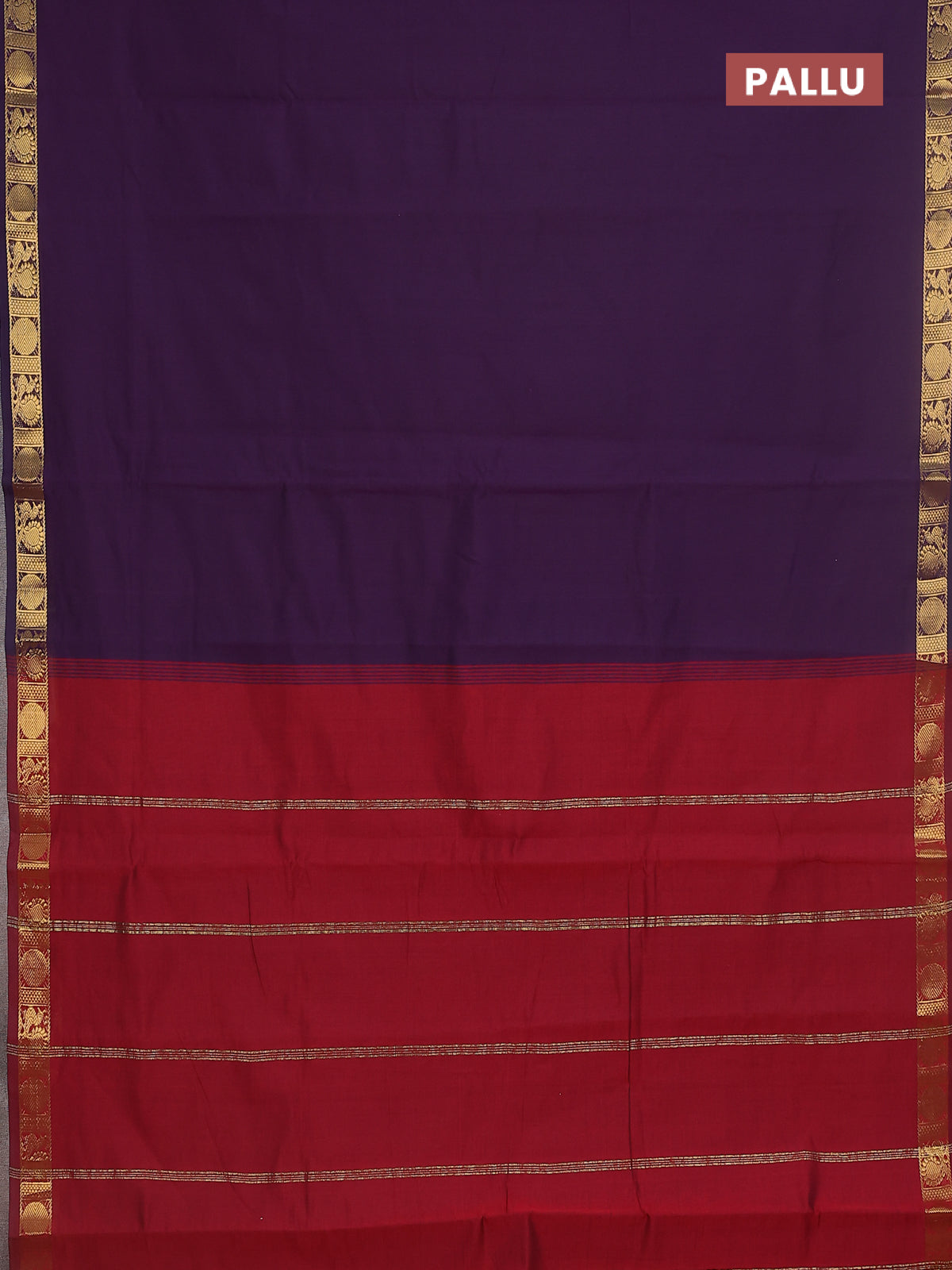 10 yards Poly cotton saree deep jamun and maroon with plain body and zari woven border