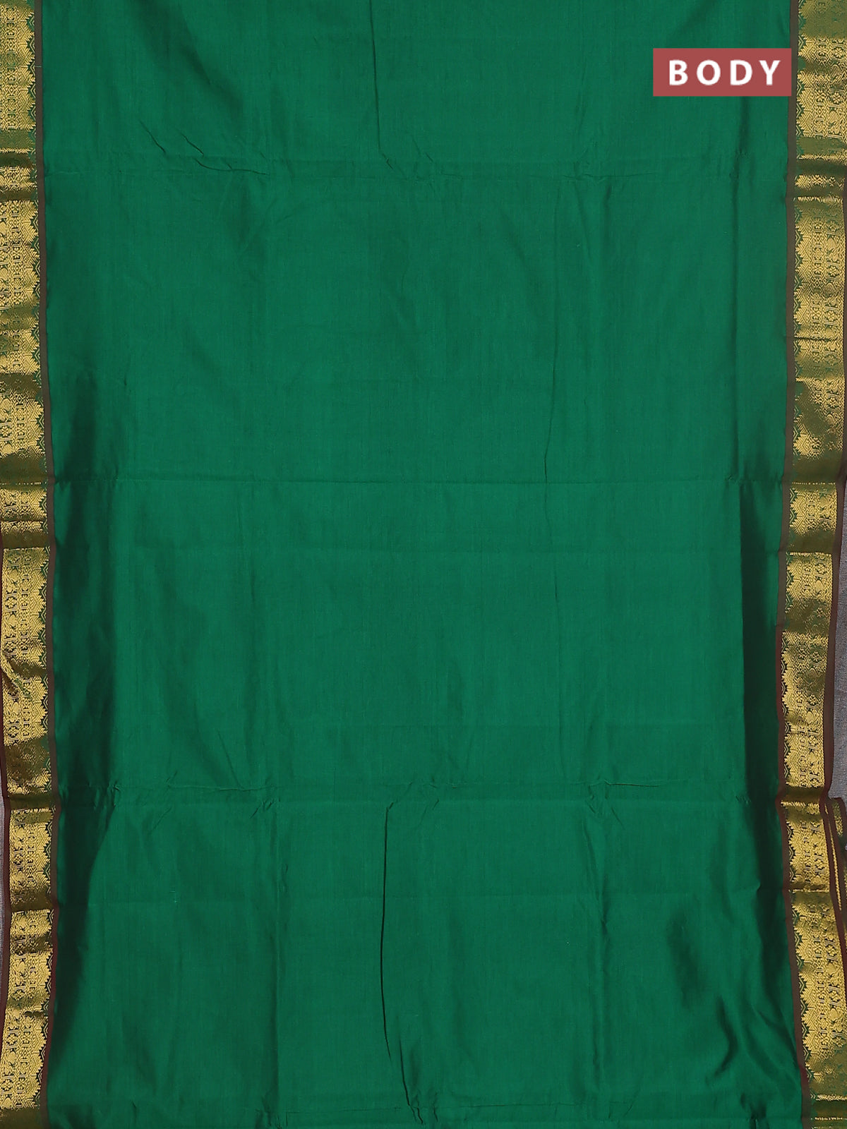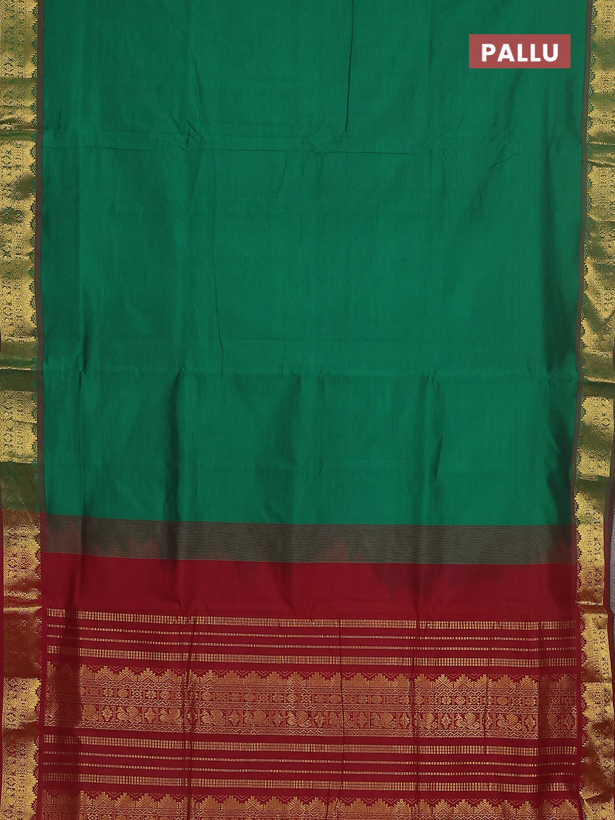 10 yards Poly cotton saree green and maroon with plain body and zari woven border