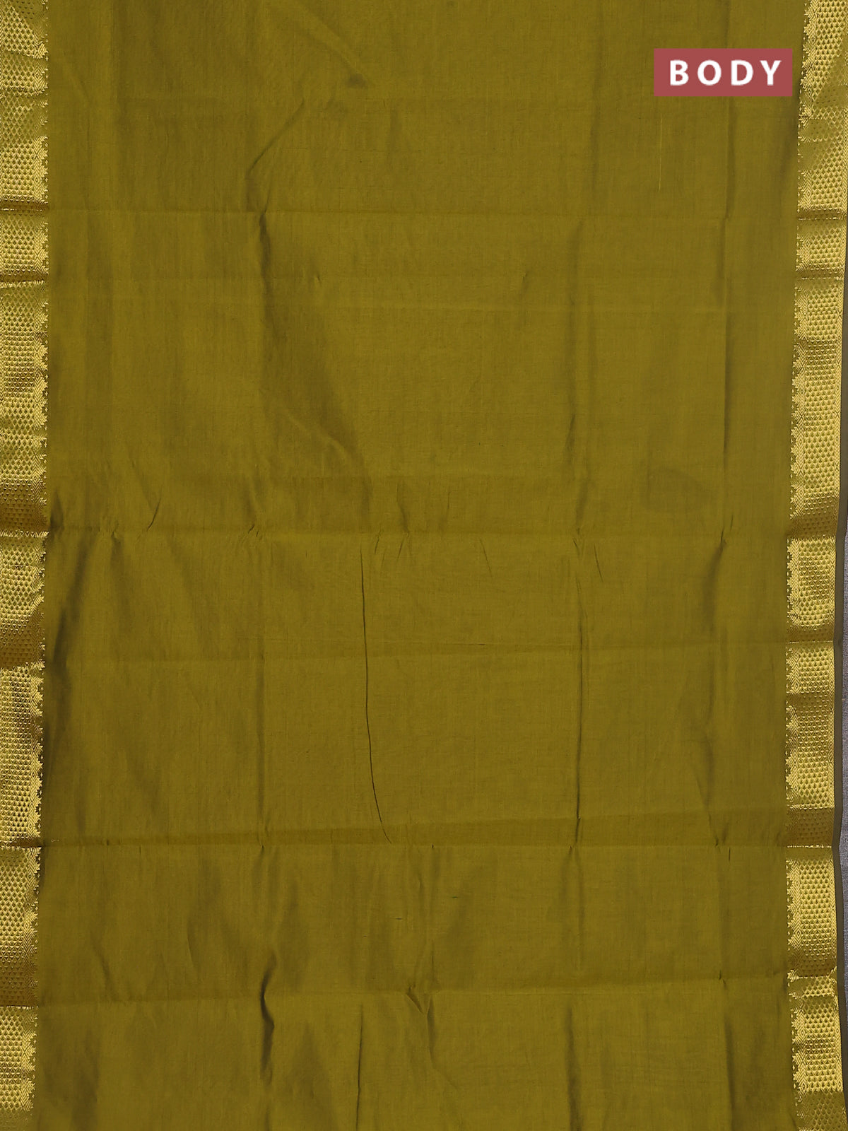 10 yards Poly cotton saree mehendi green and maroon with plain body and zari woven border