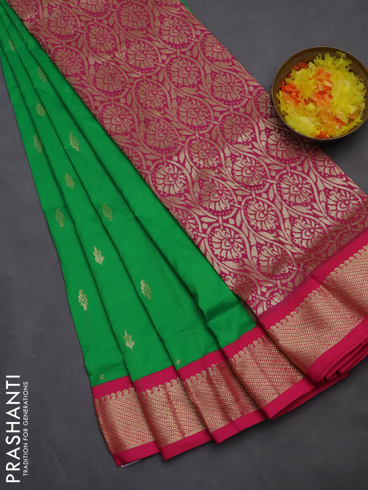 10 yards salem silk saree light green and pink with zari woven buttas and zari woven border